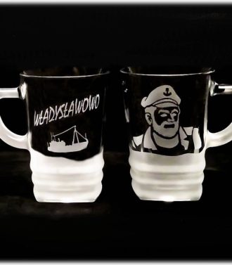 Kubek “KUBAS” o pojemności 400 ml o ciekawym kształcie, sprawia wrażenie jak by stał na spodku, gdy tymczasem jest to jedna całość. Nadaje się generalnie do każdego rodzaju napojów (woda, soki, herbata i kawa oraz inne). Kubek ozdobiony jest metodą piaskowania, co dodaje kubkowi niepowtarzalnego uroku i zarazem zdobienie jest trwałe. Zdjęcie przedstawia jeden kubek, z przodu i z tyłu. Na kubku wypiaskowany jest z jednej strony myśliwy a z drugiej strony jeleń. Każdy szczegół wykonany jest z precyzyjną dokładnością. Widać nawet najmniejsze elementy, dzięki czemu kubek nabrał oryginalnego wyglądu. Idealny prezent dla myśliwego. Nadaje się do mycia w zmywarkach.