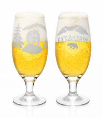 Kufel do piwa ”Miodzio” o litrażu 0,5 litra. Na kuflu są wyżłobione charakterystyczne dla ”miodzia” płaty w szkle. Na środku kufla widzimy metalowy, ogromny odlew wypukły (2D) – wilk. Klasyczny, wygodny kufel, który sprawdzi się u każdego. Idealna pamiątka z Bieszczad.
