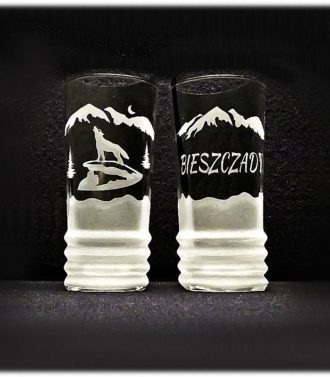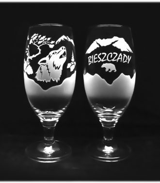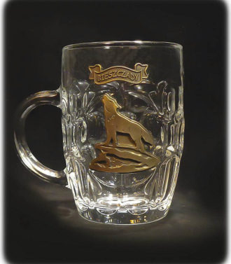 Kufel do piwa ”MIODZIO 3” o litrażu 0,5 litra. Na kuflu są wykonane wgłębienia na jego zewnętrznej powierzchni, co sprawia że przenikające przez niego światło, daje efekty świetlne. Na środku kufla widzimy metalowy odlew w kolorze – wilka na skale. Odlew jest bardzo okazały i robi wrażenie. Klasyczny, wygodny kufel, który sprawdzi się u każdego. Idealna pamiątka z Bieszczad.