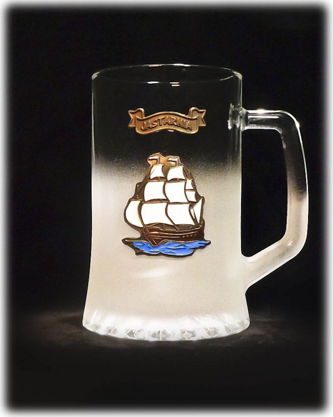 Kufel do piwa „Bremen” o litrażu 0,67 . Ozdobiony jest metalowym odlewem żaglowca “Dragon” w szronie. Produkt jest wyprodukowany z wysokiej jakości szkła. Znakomicie sprawdzi się jako kufel do codziennego użytku lub jako świetna pamiątka znad morza. Idealny na prezent dla lubujących się w piwie lub osób, które cenią sobie pamiątki ze smakiem. Ozdobi każde wnętrze i zachwyci gości. Świetna pamiątka z Jastarni.