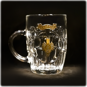 Kufel do piwa ”Miodzio” o litrażu 0,5 litra. Na kuflu są wyżłobione charakterystyczne dla ”miodzia” płaty w szkle. Na środku kufla widzimy metalowy odlew – parzenicę. Klasyczny, wygodny kufel, który sprawdzi się u każdego. Idealna pamiątka z Karpacza.