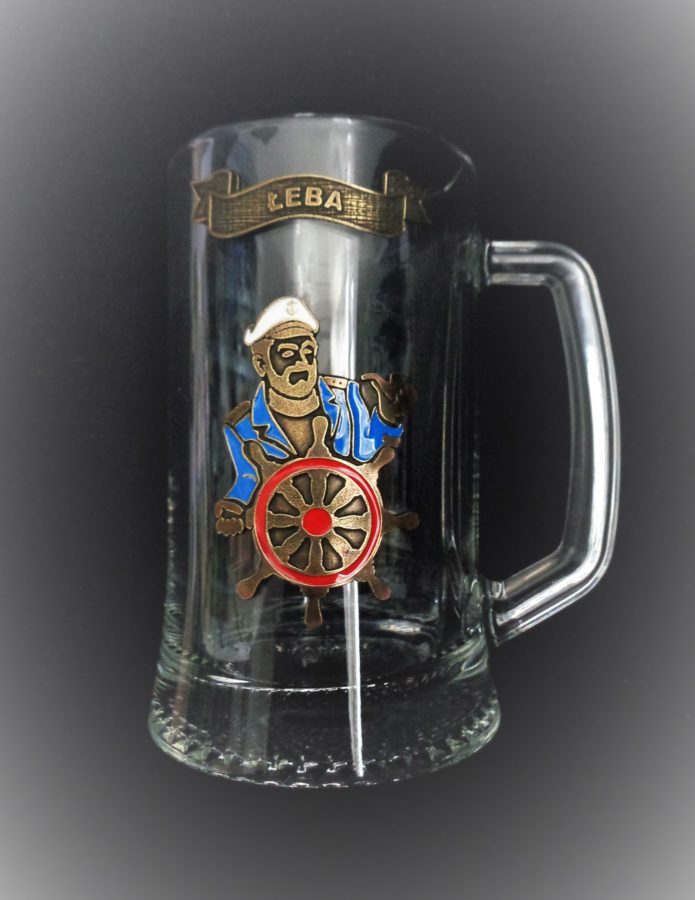 Kufel do piwa „Bremen” o litrażu 0,67 . Ozdobiony jest metalowym motywem kapitana przy kole sterowniczym w soczystych kolorach.Produkt z wysokiej jakości szkła. Znakomicie sprawdzi się jako kufel do codziennego użytku lub jako świetny upominek z Łeby. Idealny na prezent dla lubujących się w piwie lub osób, które cenią sobie pamiątki ze smakiem. Ozdobi każde wnętrze i zachwyci gości. Idealna pamiątka z Łeby.