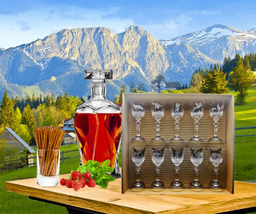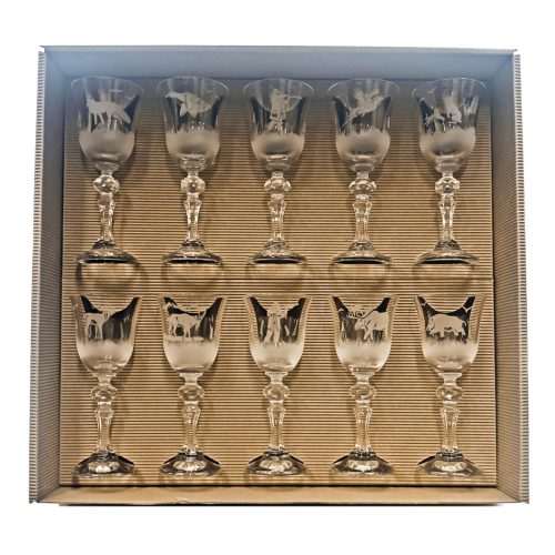 Kieliszek do wódki Krosno “KRISTA” o pojemności 50 ml. Wykonany jest z wysokiej jakości szkła. Elegancki upominek dla myśliwego. Ozdobiony jest motywem myśliwego oraz zwierzętami łownymi. W komplecie znajduje się 10 kieliszków, ozdobionych motywem 2 x myśliwy oraz zwierzętami tj. bażant, kaczka, lis, jeleń, dzik, łoś, muflon oraz zając. Całość zapakowana jest w firmowym kartonie, co sprawia że nadaje się do wręczenia jako prezent. Wygodny kieliszek o dużej pojemności, dobrze trzyma się w dłoni. Nadaje się do mycia w zmywarce.