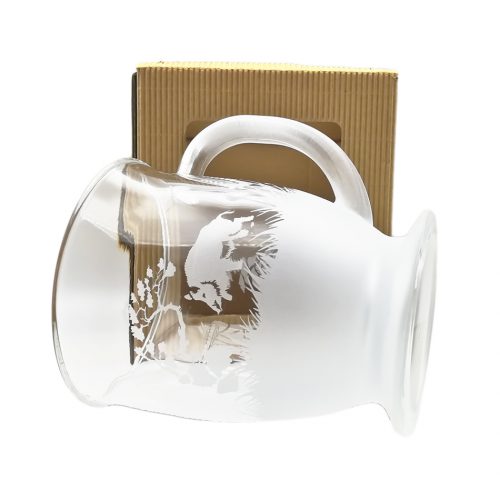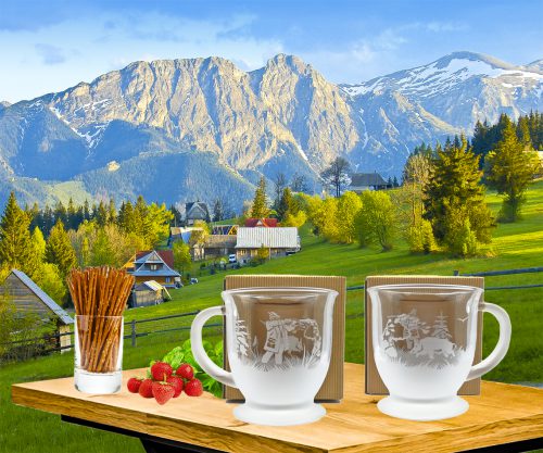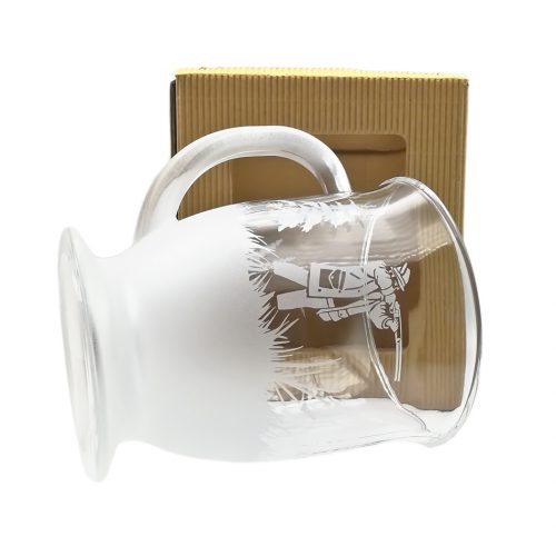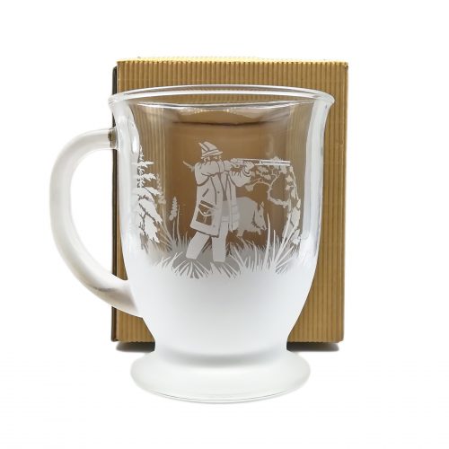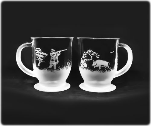 Kubek “KUBAS” o pojemności 400 ml o ciekawym kształcie, sprawia wrażenie jak by stał na spodku, gdy tymczasem jest to jedna całość. Nadaje się generalnie do każdego rodzaju napojów (woda, soki, herbata i kawa oraz inne). Kubek ozdobiony jest metodą piaskowania, co dodaje kubkowi niepowtarzalnego uroku i zarazem zdobienie jest trwałe. Zdjęcie przedstawia jeden kubek, z przodu i z tyłu. Na kubku wypiaskowany jest z jednej strony myśliwy a z drugiej strony dzik. Każdy szczegół wykonany jest z precyzyjną dokładnością. Widać nawet najmniejsze elementy, dzięki czemu kubek nabrał oryginalnego wyglądu. Idealny prezent dla myśliwego. Nadaje się do mycia w zmywarkach.