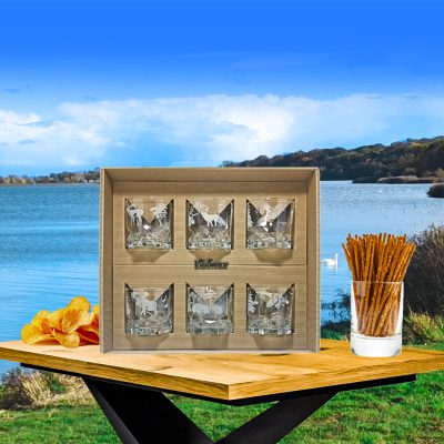Szklanka do whisky “KWADRAT” o pojemności 250 ml. Elegancki upominek dla myśliwego. Szklanka jest wypiaskowana , co sprawia że wygląda jak by była zmrożona. Ozdobiona jest motywem zwierząt łownych. Jedno zdjęcie przedstawia jedną szklankę z dwóch stron. Można ją ozdobić z jednej strony zwierzętami a z drugiej strony postacią myśliwego. Wygodna szklanka o dużej pojemności, dobrze trzyma się w dłoni. W komplecie znajduję się 6 szklanek w kartonie firmowym VIOLMAX. W zależności od potrzeby, można je ozdobić zwierzętami takimi jak: bażant, kaczka, dzik, jeleń, łoś, muflon, lis oraz zając. Całość jest zapakowana w estetycznym i ekologicznym kartonie. Nadaje się do mycia w zmywarce.