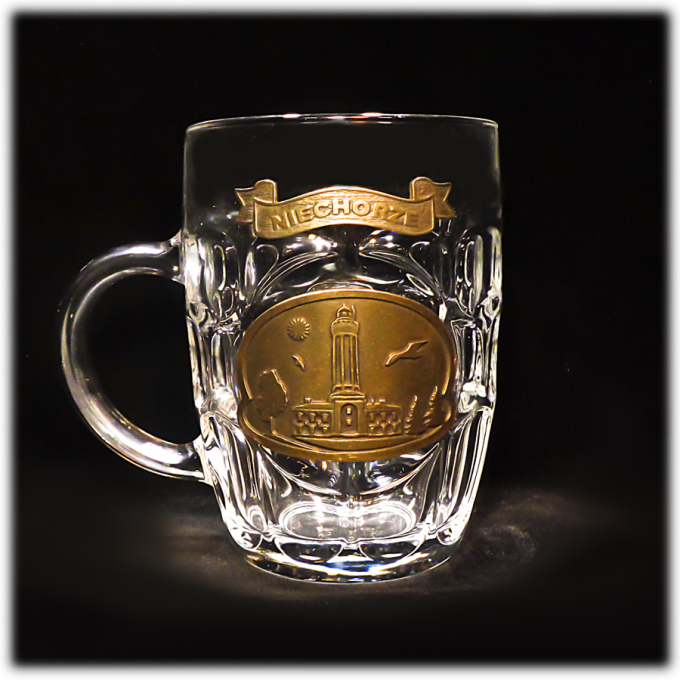 Kufel do piwa ”Miodzio” o litrażu 0,5 litra. Na kuflu są wyżłobione charakterystyczne dla ”miodzia” płaty w szkle. Na środku kufla widzimy metalową blachę z motywem latarni. Klasyczny, wygodny kufel, który sprawdzi się u każdego. Idealna pamiątka z Niechorza.