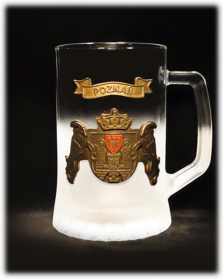 Kufel do piwa „Bremen” o litrażu 0,67 . Ozdobiony jest okazałym metalowym odlewem z motywem koziołków poznańskich w kolorze i nazwą miasta Poznań. Wypiaskowanie kufle sprawia, że wygląda on jak by był zmrożony, Znakomicie sprawdzi się jako kufel do codziennego użytku lub jako świetna pamiątka z Poznania. Idealny na prezent dla lubujących się w piwie lub osób, które cenią sobie pamiątki ze smakiem. Ozdobi każde wnętrze i zachwyci gości.Idealna pamiątka z Poznania.