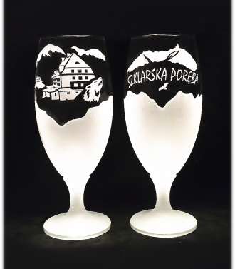 Kufel do piwa ”Miodzio” o litrażu 0,5 litra. Na kuflu są wyżłobione charakterystyczne dla ”miodzia” płaty w szkle.Na środku kufla umieszczony został kolorowy odlew z motywem Szrenicy oraz głowy wilka. Cała ozdoba na pamiątce wykonana jest z metalu. Motyw metalowy robi ogromne wrażenie. Idealna pamiątka z gór.