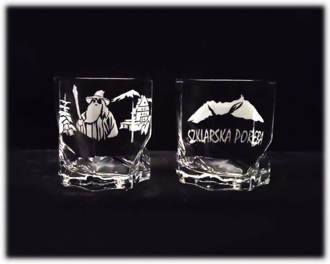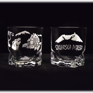 Szklanka do whisky “AGA” o pojemności 325 ml. Wypiaskowana jest na niej Szrenica oraz “Duch Gór”. Szklanka posiada zdobnicze wgłębienia a tym samym nadaje jej wyjątkowy wygląd. Wykonana jest z wysokiej jakości szkła. Przepiękna i dostojna pamiątka z robiącymi wrażenie zdobieniem. Idealna pamiątka ze Szklarskiej Poręby. Nadaje się do mycia w zmywarce.