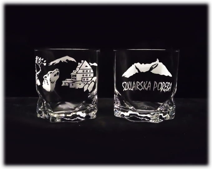 Szklanka do whisky “AGA” o pojemności 325 ml. Wypiaskowana jest na niej Szrenica oraz głowa wilka. Szklanka posiada zdobnicze wgłębienia a tym samym nadaje jej wyjątkowy wygląd. Wykonana jest z wysokiej jakości szkła. Przepiękna i dostojna pamiątka z robiącymi wrażenie zdobieniem. Idealna pamiątka ze Szklarskiej Poręby. Nadaje się do mycia w zmywarce.