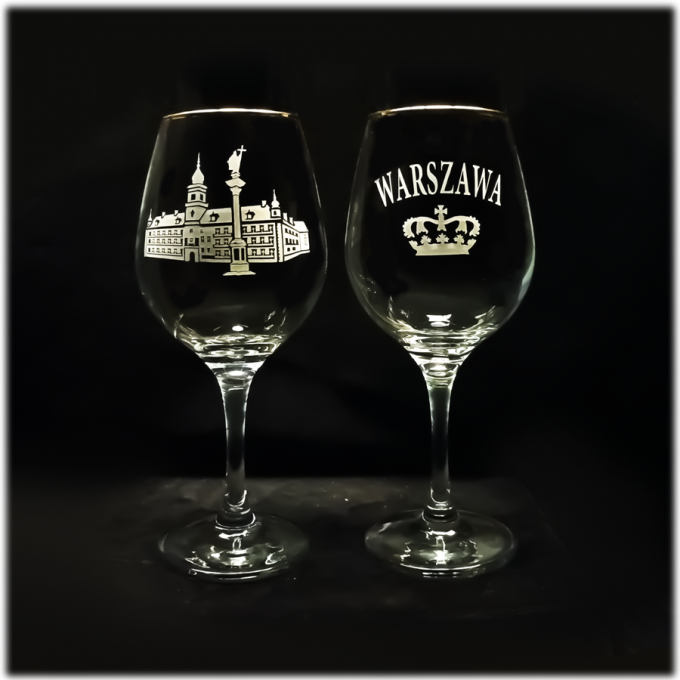 Kieliszek do wina “AMBER” o pojemności 460 ml. Cały kieliszek jest precyzyjnie wypiaskowany. Widnieje na nim Zamek Królewski oraz z tyłu napis ”Warszawa”. Bardzo wygodnie utrzymuje się w dłoni. Wykonany jest z wysokiej jakości szkła. Obrzeże kieliszka ozdobione jest złotą lamówką. Idealna pamiątka z Warszawy. Nadaje się do mycia w zmywarkach.