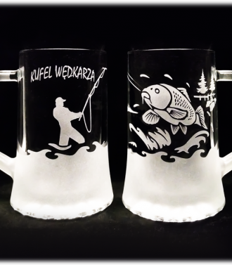 Szklanka do piwa “MAŁGOSIA” o litrażu 500 ml. Elegancki upominek dla wędkarza , szklanka jest wypiaskowana , co sprawia że wygląda jak by była zmrożona. Ozdobiona jest motywem ryby, karpia. Wygodna szklanka o dużej pojemności, dobrze trzyma się w dłoni. Nadaje się do mycia w zmywarce.