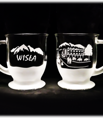 Kufel do piwa ”Miodzio” o litrażu 0,5 litra. Na kuflu są wyżłobione charakterystyczne dla ”miodzia” płaty w szkle. Na środku kufla widzimy metalową blachę z motywem typowym dla Wisły. Klasyczny, wygodny kufel, który sprawdzi się u każdego. Idealna pamiątka z gór.