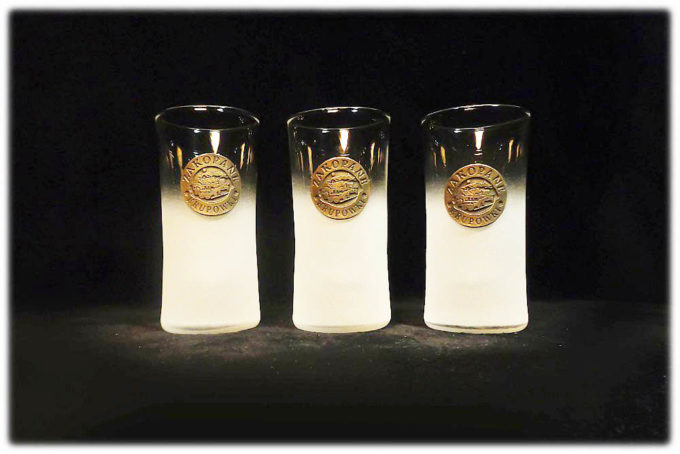 Kieliszek do wódki SHOT pojemności 40ml. Kieliszek jest pięknie oszroniony do połowy, na samym środku umieszczona została metalowa ozdoba – Krupówki w Zakopanem. Takie pamiątki zawsze robią wrażenie. Połączenie praktycznej rzeczy z oryginalną pamiątką i ozdobą np w kuchennej szafce czy eleganckim barku, w salonie.Idealna pamiątka z gór