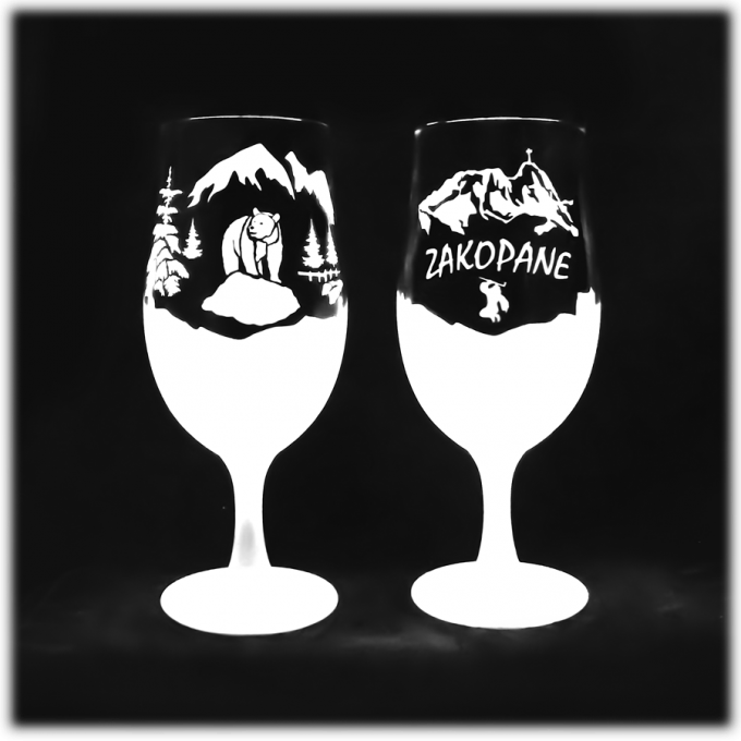 Pokal do piwa “VIOLA” o litrażu 380 ml. Elegancki upominek z Zakopanego. Wykonana jest z wysokiej jakości szkła. Szklanka jest wypiaskowana , co sprawia że wygląda jak by była zmrożona. Ozdobiona jest motywem niedźwiedzia siedzącego na skale. Wygodna szklanka o małej pojemności, dobrze trzyma się w dłoni. Nadaje się do mycia w zmywarce.