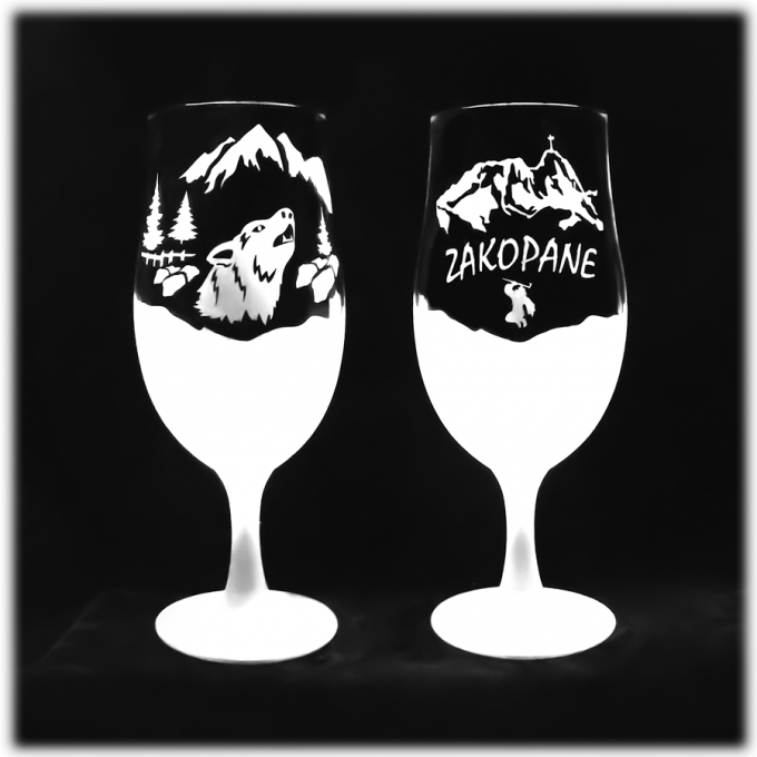 Pokal do piwa “VIOLA” o litrażu 380 ml. Elegancki upominek z Zakopanego. Wykonana jest z wysokiej jakości szkła. Szklanka jest wypiaskowana , co sprawia że wygląda jak by była zmrożona. Ozdobiona jest motywem głowy wilka. Wygodna szklanka o małej pojemności, dobrze trzyma się w dłoni. Nadaje się do mycia w zmywarce.