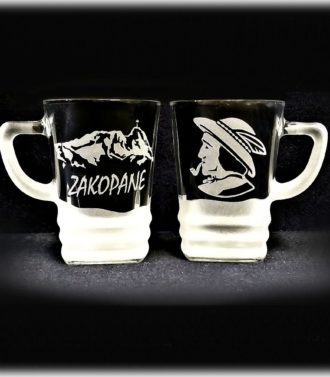 Szklanka do piwa o pojemności 0,5 litra z wypiaskowanym motywem głowy górala oraz do połowy w szronie. Na szklance widnieje napis ”Zakopane”. Zwykła szklanka dzięki precyzyjnemu piaskowaniu nabrała oryginalności. Idealna pamiątka z gór. Nadaje się do mycia w zmywarce.
