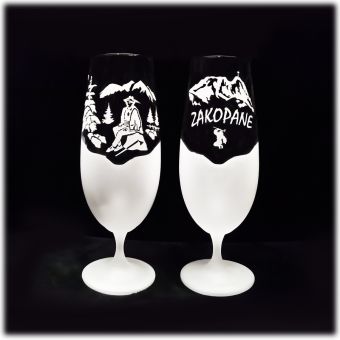 Pokal do piwa “COLIBRI” o pojemności 380 ml. Wykonany z wysokiej jakości szkła, bardzo mocny i porządny. Pokal jest wypiaskowany, co sprawia wrażenie jak by był zmrożony. Na szkle widnieje napis ”Zakopane” wraz z górą Giewont oraz wypiaskowanym góralem siedzącym na kamieniu, motyw typowy dla Zakopanego. Bardzo elegancki pomysł na prezent. Idealna pamiątka z Zakopanego. Nadaje się do mycia w zmywarkach.