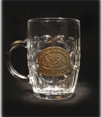 Szklanka do piwa “MAŁGOSIA” o litrażu 500 ml. Elegancki upominek z Zakopanego. Wykonana jest z wysokiej jakości szkła. Szklanka jest wypiaskowana , co sprawia że wygląda jak by była zmrożona. Ozdobiona jest motywem rysia na gałęzi. Wygodna szklanka o dużej pojemności, dobrze trzyma się w dłoni. Nadaje się do mycia w zmywarce.